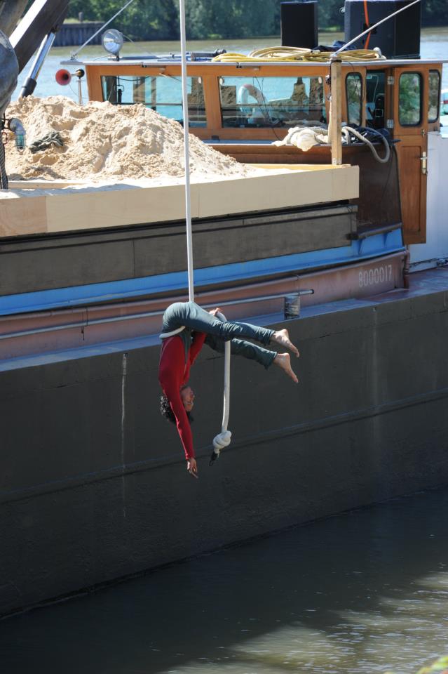 Un spectacle d’eau douce mi cirque-mi théâtre, destiné aux gens des rives, absurde, décalé, poétique et savoureux, un brin écolo, sur les plaisirs, les joies et les problématiques d’eau douce.