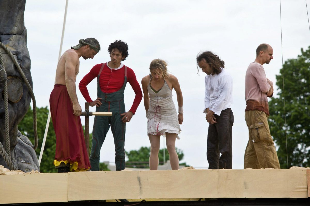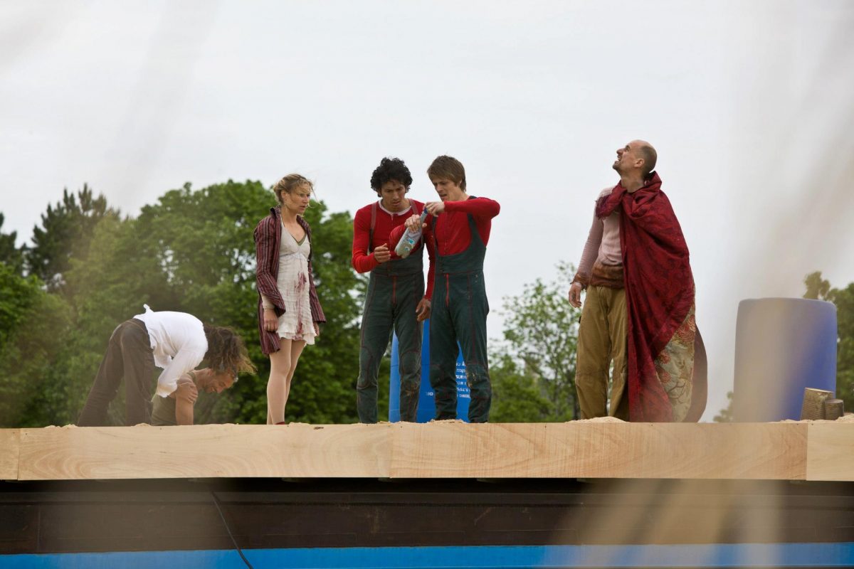 Six naufragés dérivent au fil de l’eau, sur un bateau de sable.